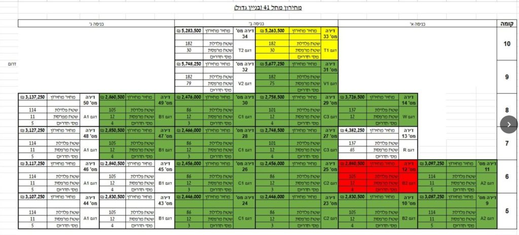 בבניין אחר שנמצא קרוב לבניין שבו קנינו (גם על הים), קבלן מכר בפרויקט תמ"א 38 (חיזוק מבנה קיים ובניה של קומות נוספות) בפריסייל (לפני שנה - מאז המחירים עלו עוד יותר) דירות קטנות יותר שיהיו מוכנות בעוד 4 שנים בעלות של יותר מ-3 מיליון ש"ח (תראה בתמונה כאן למטה - זה המחירון של הקבלן וכל הדירות פה נמכרו):